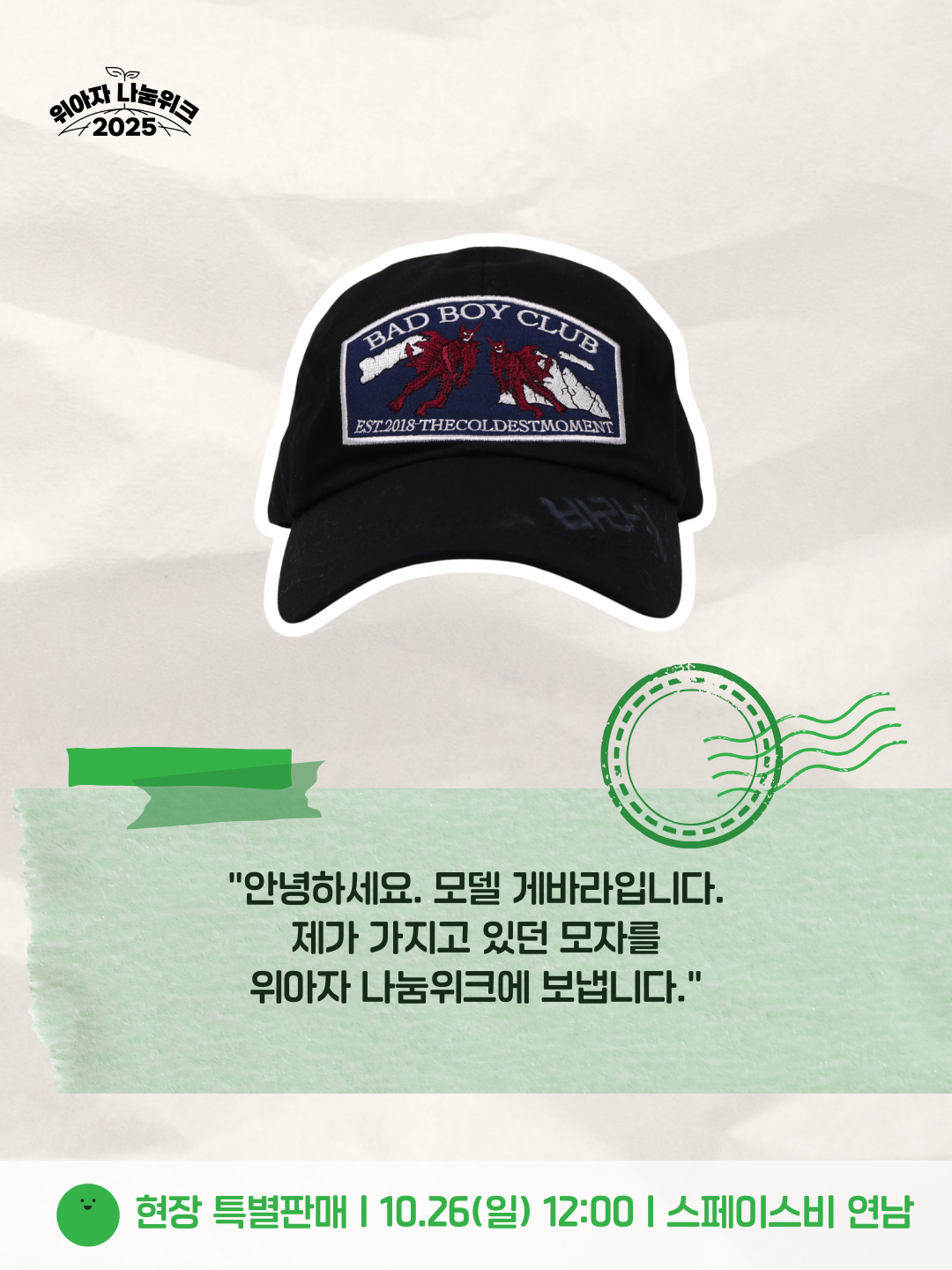 JTBC 예능 '뭉쳐야 찬다4'에 출연 중인 모델 게바라가 개인 소장하고 있던 모자를 위아자 나눔위크에 기증했습니다.