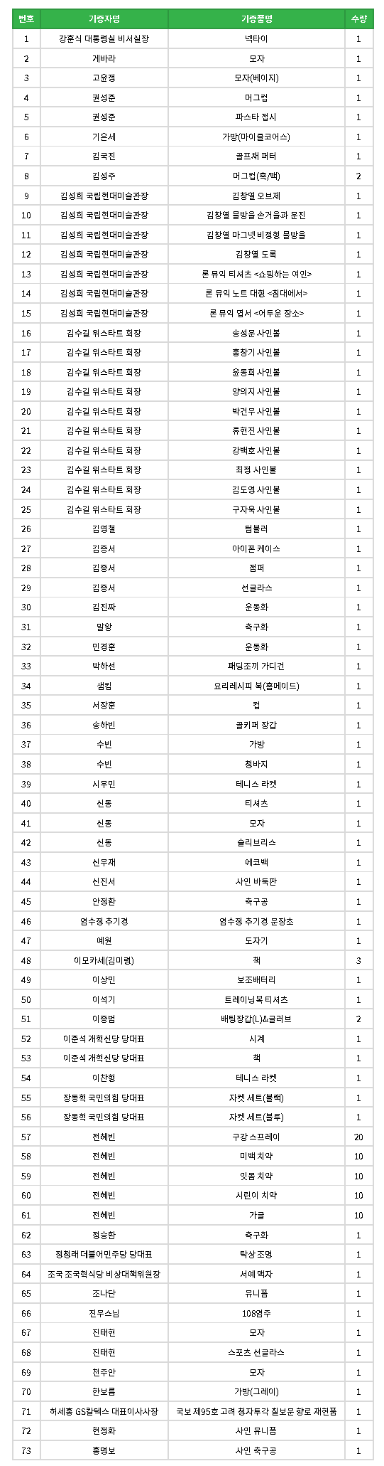 *본 리스트는 기증자 이름(가나다순)으로 정렬되었습니다.